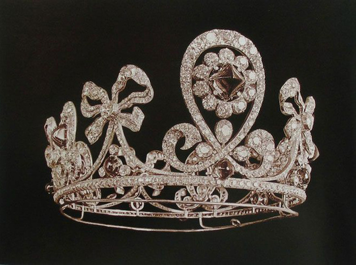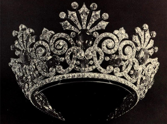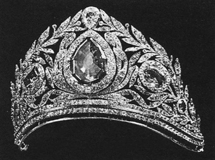 История этой диадемы так же остросюжетна и интересна, как и история Владимирской, ведь она в свое время тоже принадлежала Великой княгине Марии Павловне, сумевшей, благодаря своей дружбе с английским дипломатом, вывезти свои сокровища из России.