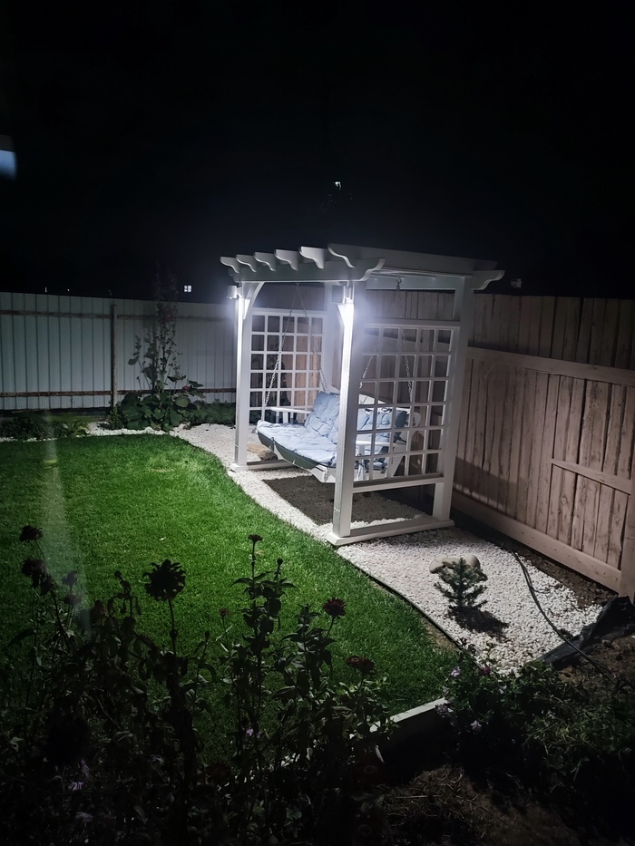 Я нашла фонарики, привесила и гамак стал лучшим аттракционом. Даже как-то застала картину, когда компания девчонок качалась в гамаке по очереди, с секундомером. Потом гирлянды отвалились, или сели, были Флажки, а потом и ничего не было, а сейчас у меня дома лежит ткань на флажки, которые не выцветают. Есть все шансы, что снова появятся.