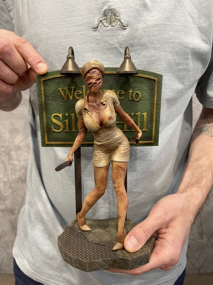 Из неудачного - это моя третья модель, допустил ошибку и не сделал сквозных отверстий - модель пустотелая и собиралась из нескольких составных частей (руки/ноги/туловище/голова). Из-за чего уже после полной покраски самой фигурки (не стенда) через пару дней разорвало туловище и голову от внутренних испарений. Обидно было, пришлось перепечатать и высверлить в местах крепления дополнительные отверстия. Теперь модель можно было красить почти сразу, вся лишняя жидкость, полимер и испарения выходили через отверстия в ногах.