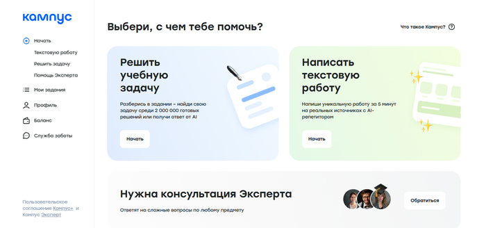 Kampus.ai – это мощная платформа, которая использует нейросети для решения задач. Она идеально подходит для студентов и школьников, которым нужно решить задачу по фото онлайн или получить готовый результат в текстовом формате.