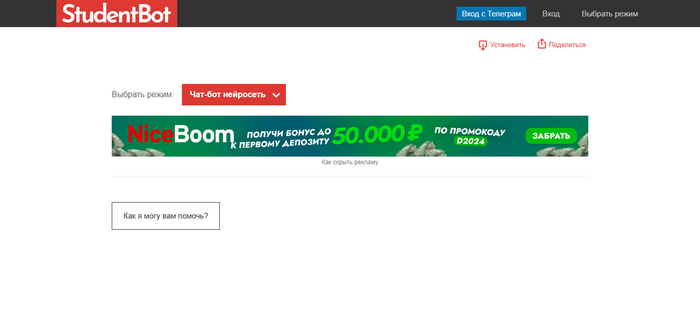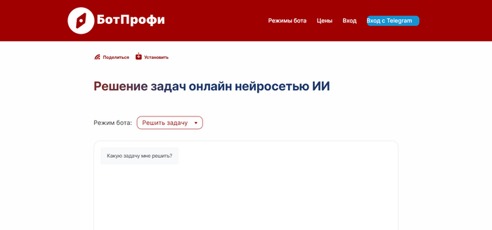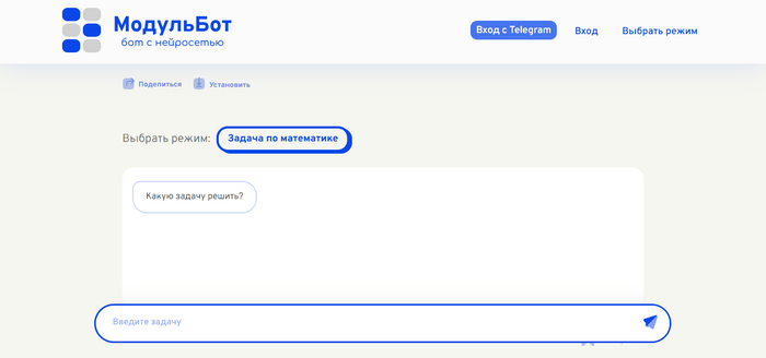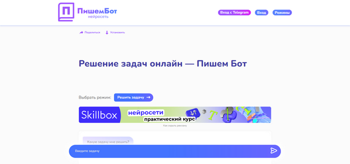 Этот сервис специализируется на помощи школьникам и студентам с домашними заданиями. Pishembot.ru отлично справляется с текстовыми задачами и математическими примерами.