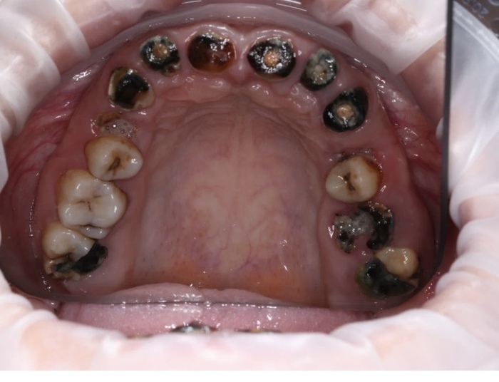 Вот так выглядело до удаления в начале пути после спиливания неудачных имплантов :