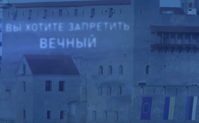 А теперь скажите мне, где нашли проектор такой мощности, который может передавать днём на такое большое расстояние настолько яркий световой пучок, что так четко видно буквы? Про лазерный проектор не пиздеть - там такое мерцание было б на таком расстоянии в камеру, что прочесть толком ничего не получилось бы.
