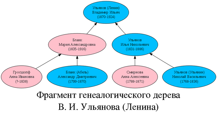 Так вот, считается, что еврейская кровь передалась Ленину от его материнской родословной. Звали его мать - Марией Александровной, чья девичья фамилия была Бланк. Однако при глубоком изучении родословной матери Ленина, она больше имела шведско-немецкие корни, нежели еврейские. Тем не менее, любители порассуждать на эту тему копают глубже и вспоминают его прадедушку Дмитрия Бланка, официальная национальность которого – неизвестна. Хотя даже если предположить, что он был евреем, на это ссылаются достаточно много источников, то в наибольшем случае, Ленин еврей на 1/8 часть.