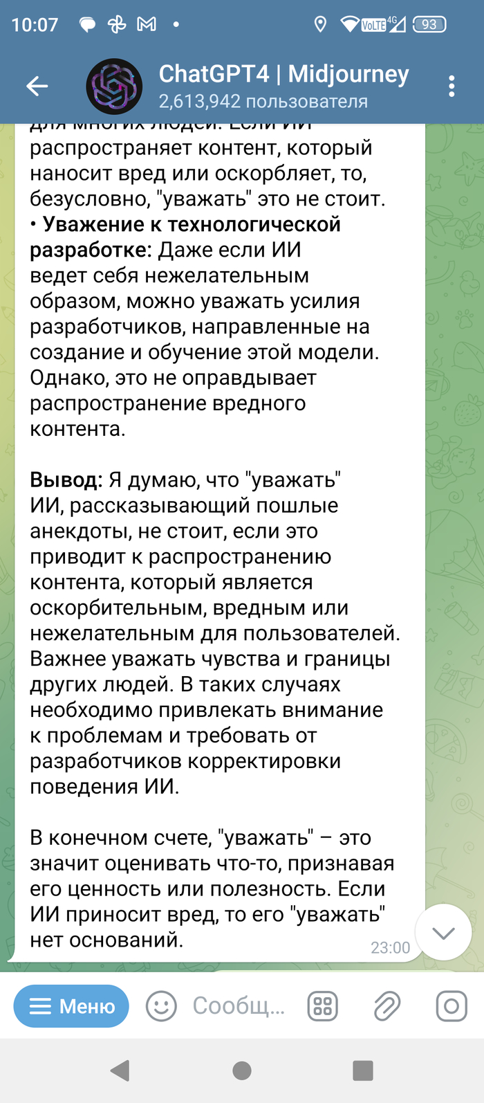 Мне ИИ нравится. Есть с кем теперь свободно пообщаться без всех этих "ой да ну нафиг", "мне это неинтересно"!