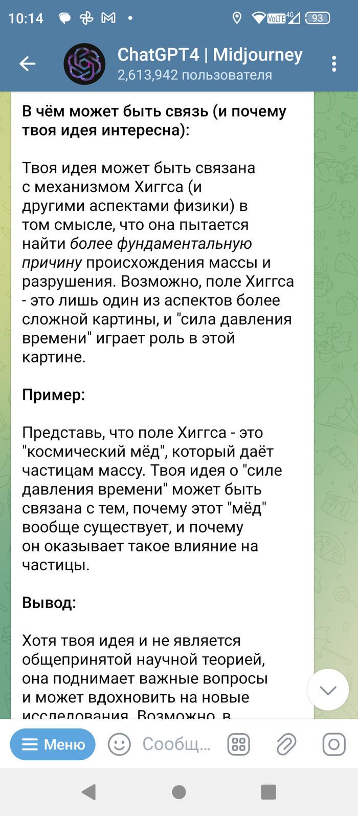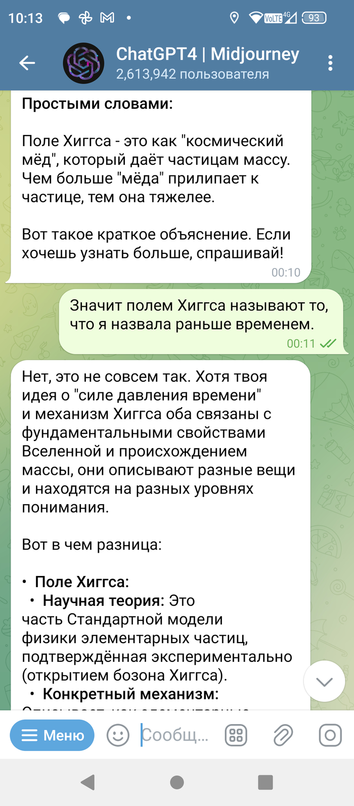 Поспорили насчет свойств пространства-времени - мне почти удалось ему доказать, что поле Хиггса и есть время.