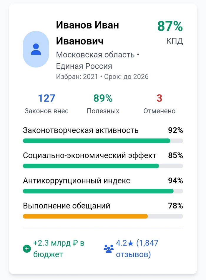 Продолжение поста «Система оценки эффективности депутатов версия 0.001»