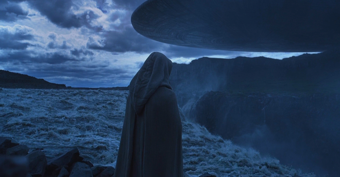 Сцена у водопада задаёт тон всему фильму: безмолвный великан с полупрозрачной кожей и глазами без белков выпивает странную жидкость, его тело разрушается и распадается на молекулы, из которых рождается жизнь.