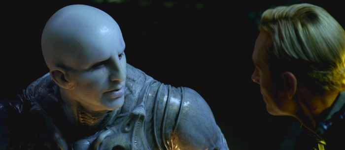 Между Инженером из пролога и Инженерами с LV-223 много общего. У обоих светлая, почти полупрозрачная кожа без волос. У обоих чёрные глаза и мужское телосложение. Если верить удалённым сценам, оба говорят на версии праиндоевропейского языка.