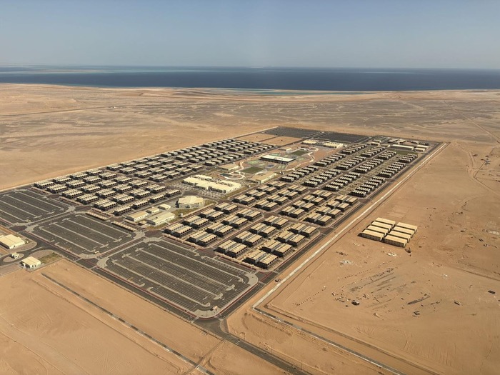 Работы по реализации проекта начались в октябре 2022 года, после завершения масштабной подготовки строительной площадки в районе Табук, недалеко от Красного моря.