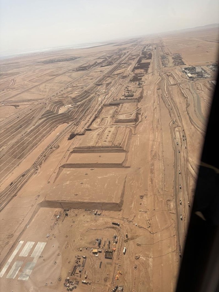 Строительные работы вроде ведутся. К октябрю 2025 года были выполнены земляные работы вдоль значительной части трассы, установлены тысячи свай, перемещены миллионы кубометров грунта, и построена инфраструктура для осушения. Однако темпы строительства на этом объекте заметно замедлились, а фокус смещён на другие проекты NEOM.