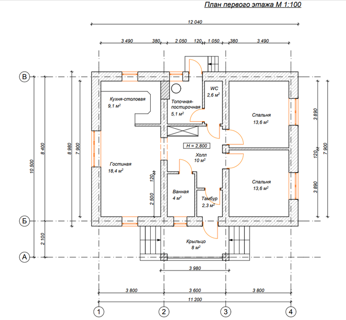 Площади помещений получились чуть меньше, из-за небольших погрешностей кладки и непрофессиональной штукатурки.