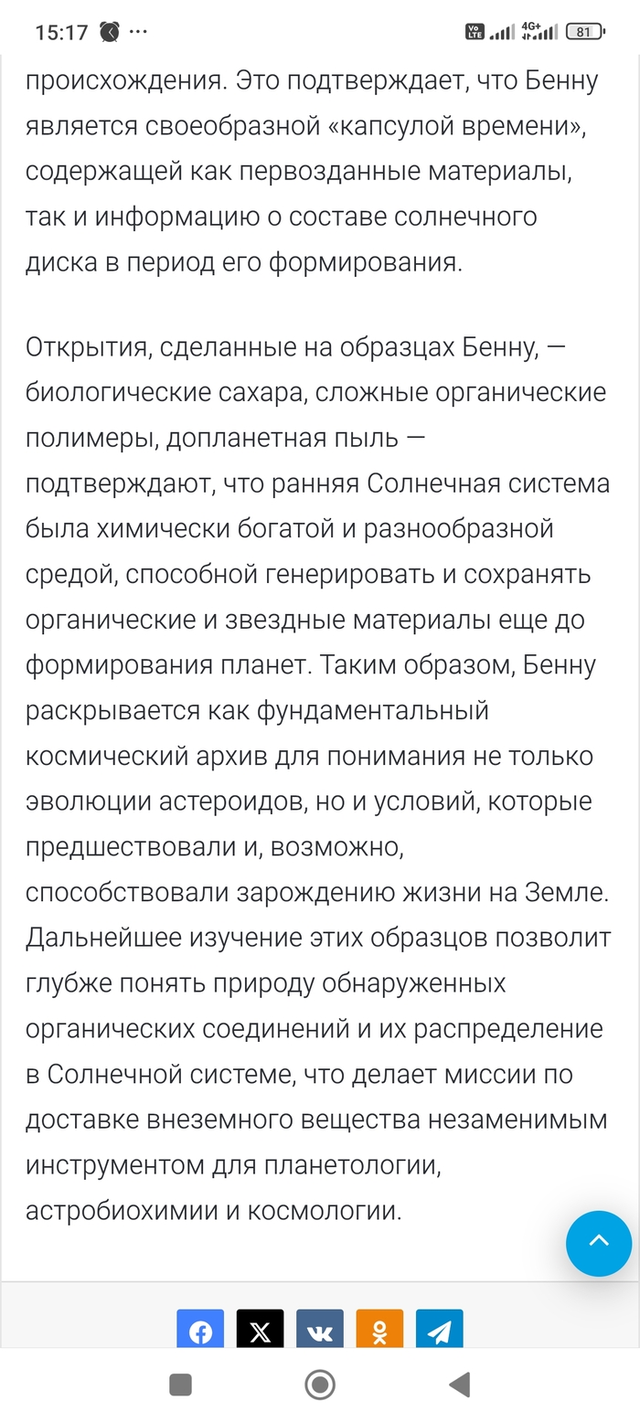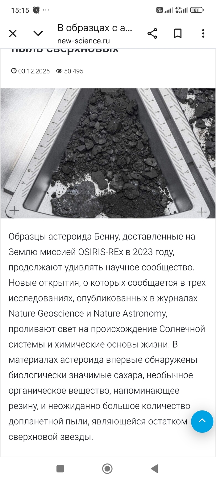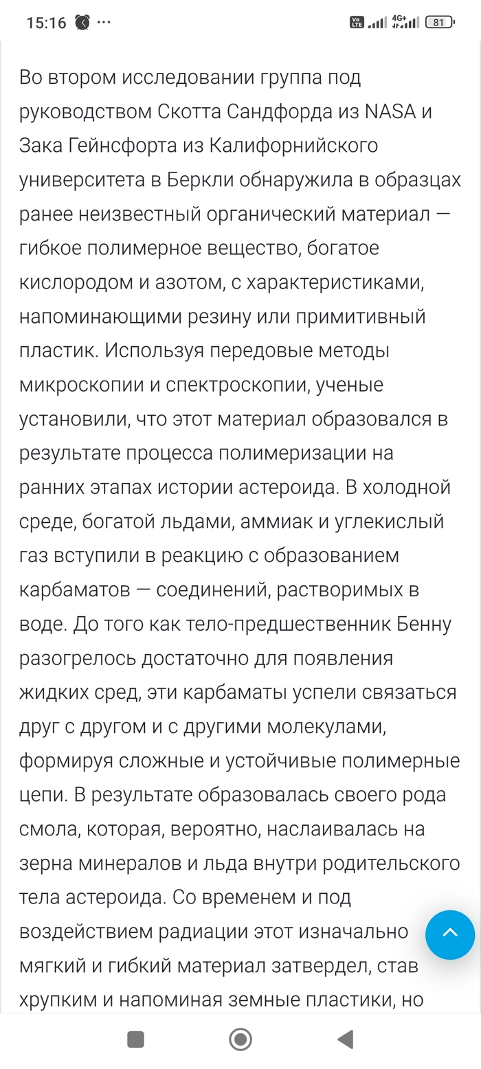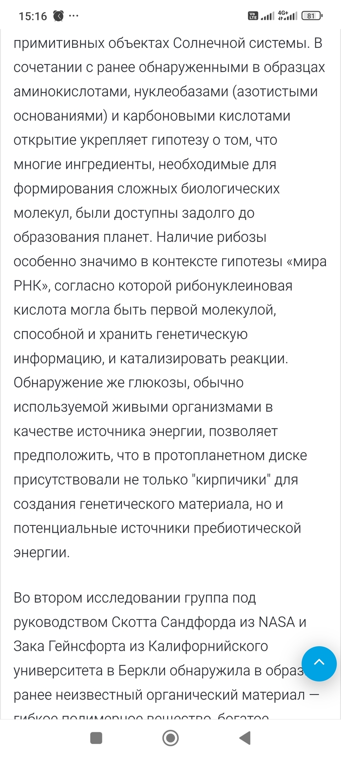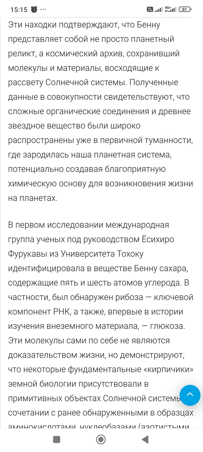 P.S. добавлю всё таки свои фантазии. Там в образце с астероида Бенну, возможно есть ещё как минимум 4 нуклеотида пока неизвестных. То есть не аденин, гуанин, цизин, тимин, уранил, а другие возможно с другой формулой строения. Просто подумалось так. Сорри.