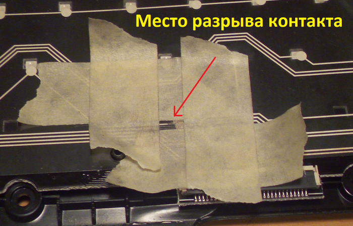 Новогодние праздники, были завершены разлитым бокалом сока на клавиатуру. Клавиатура вообще защищена от пролитий на неё жидкостей. Но тут все усугубилось тем, что сок был сладкий. Через несколько часов половина клавиш начала залипать, особенно грешил пробел. Пока я отлучался, сын решил самостоятельно вытащить пробел и промыть его. Помыть помыл, но совершил главную ошибку, забыл качественно высушить "ножку" клавиши, которая непосредственно нажимает на мембрану. С этой ножки вода попала на мембрану, и потом соответственно на контактные пластины под ней.