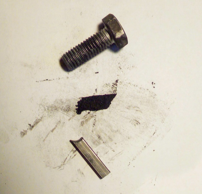 Как видно, стержень стирается об болт практически в пыль, что собственно говоря нам и надо.