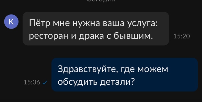 Предлагаем гениальный план как наебать эту пизду, и ещё заработать за это пятёру(если вы идиот то можете сказать сколько она реально вам башляет и отдать половину), но если вы реальный бизнесмен то сыграете на его желании проучить бывшую и ничего не заплатите, скажите что то типа что хотите её выебать и она хочет что бы вы набили морду бывшему, короче напиздите