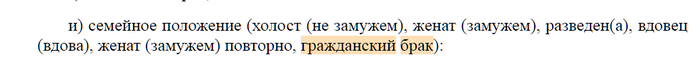 То есть как мы видим, в процитированных законодательных актах словосочетание "гражданский брак" явно и недвусмыслено противопоставляется браку, зарегистрированному в органах ЗАГСа, что свидетельствует о несостоятельности позиции срывателя покровов.