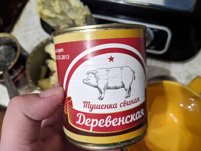 Вчера был день ЛЛ, сегодня воскресенье, день ленивой еды. Открыл банку свиной тушенки, а там: