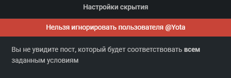 Левый пост в ленте подписок, автора и тег которого нельзя кинуть в игнор, не вяжется с этим пунктом.