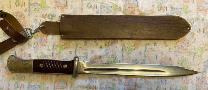 в процессе очистки, и благодаря одному форуму, удалось узнать что это штык-нож WZ.24 образца 1924г от карабина Маузер К98, сделан на заводе Перкун.