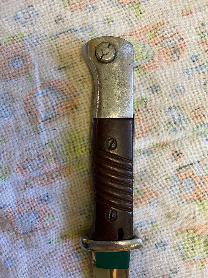 Как то, годиков 9 назад, друг отца попросил отреставрировать штык - нож. Сам друг - вояка и наткнулся на штык во время учений. Буквально споткнулся об него.Выглядел он очень печально. Ощущение что побывал в каком то пожаре из за этого искривился.