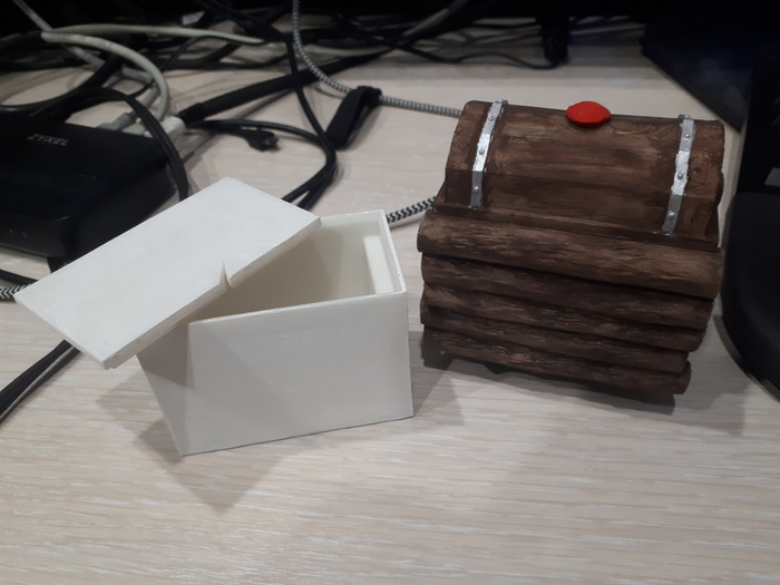 "рубин", который венчает сундук, (да, это должен был быть камушек) оказался также слишком маленьким: грани "кристалла" не видны; я намерено замазал, в итоге, этот элемент краской, чтобы выглядело чуть более опрятно;