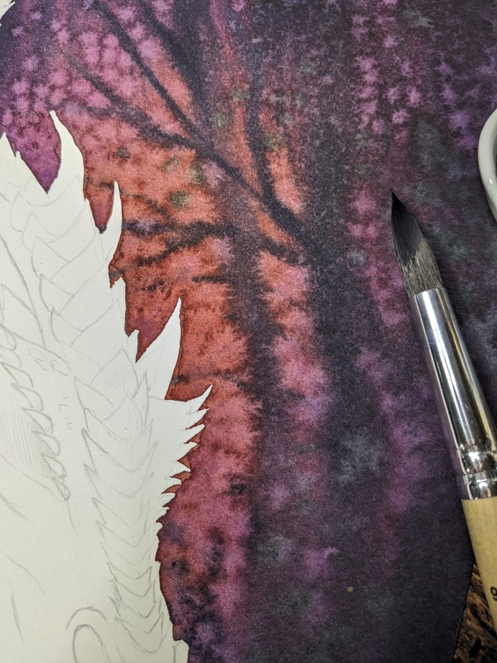 Акварельная иллюстрация "Дракон". Хлопковая бумага Baohong А3, акварель Mijello Mission Gold, линеры.