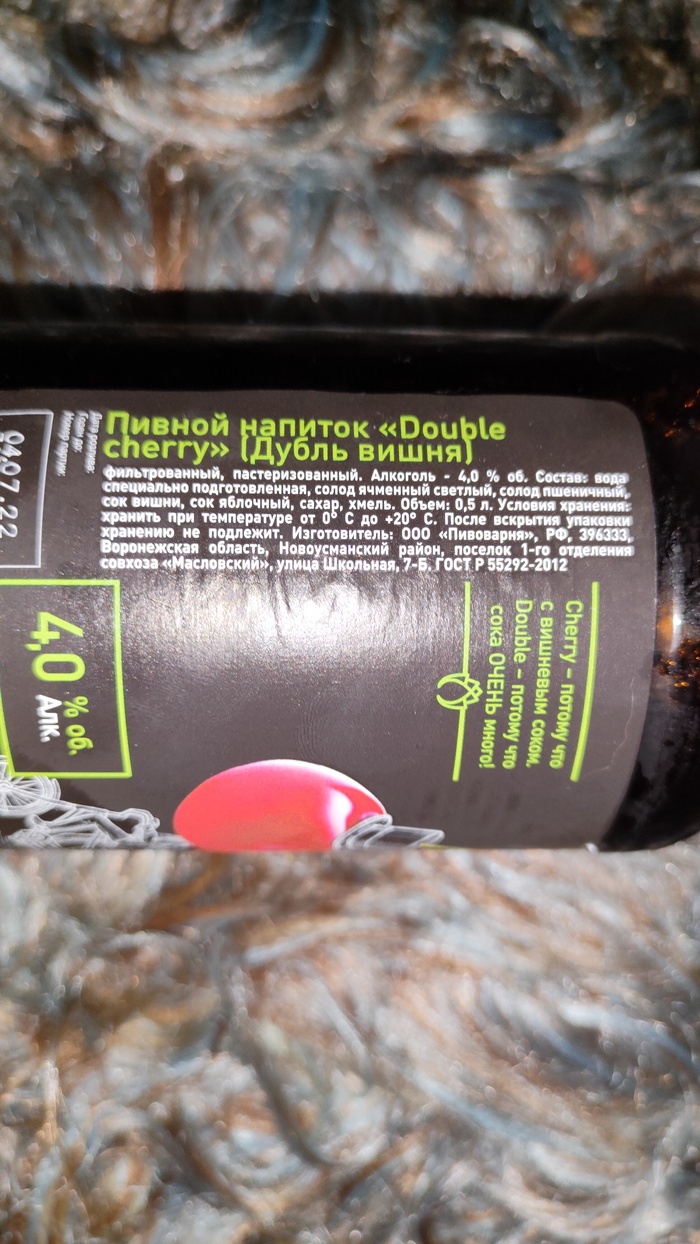 Изготовитель: ООО "Пивоварня", Воронежская область, Новоусманский район, поселок 1-го отделения совхоза "Масловский".