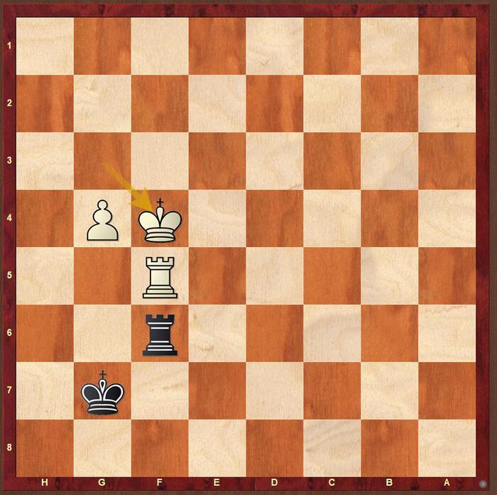 14... Крf8 - черные вынуждены отойти королем с опасной для них линии е, 15. Ке4 - белые усиливают давление и высвобождают поля для движения пешки с. И оказывается, что у коня нет хорошего поля для отхода.