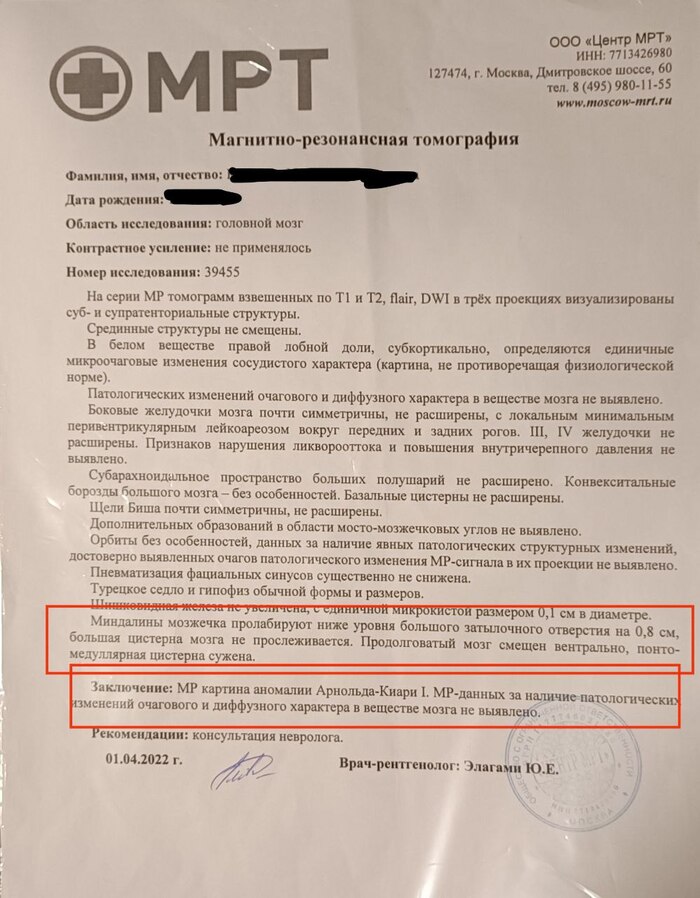 Моя история с аномалией Арнольда-Киари (1 типа)