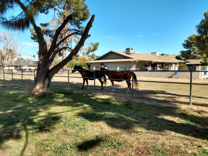 В пустынном царстве одноэтажной Америки много пространства, поэтому хочешь посмотреть лошадок или козочек - да вот они, на соседней улице.