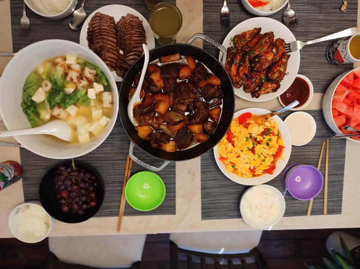 К китайской семье мы ходили в гости - их дом был напичкан современной техникой, удивительными игрушками. Для нас они наготовили своей традиционной еды.
