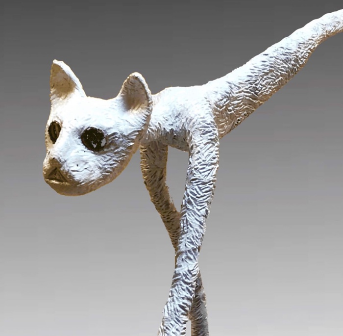 Арт- объект «Блудный белый кот», создан из переработанного пластика