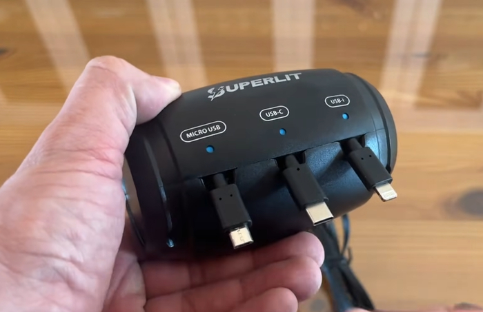 Инновационное решение для салона, которое помогает поддерживать порядок и заряжать сразу три устройства. Крепится за подголовник, имеет втягивающийся кабель длиной до 60 см и универсальные разъёмы: Lightning, micro USB и USB-C.