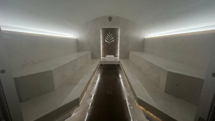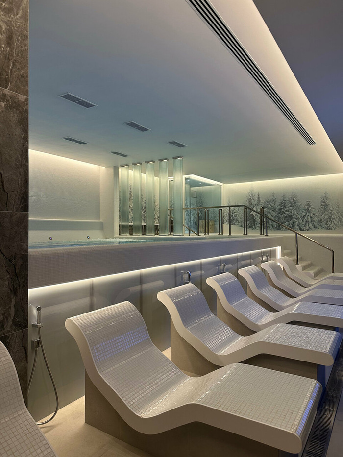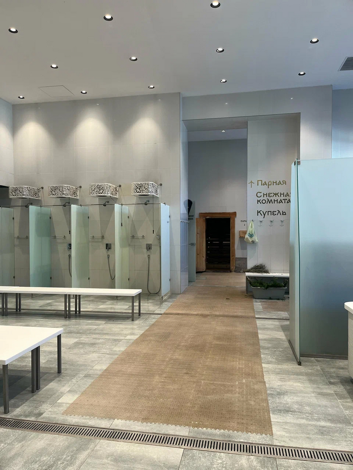 Здесь тоже всё сделано отлично - много душевых, 5-6 обливных устройств большого объёма, т.е. на несколько "залпов". 2 бассейна - тёплый и холодный для любителей контраста. Холодный бассейн по моим ощущениям - около 3-4 градусов (не 8 как на фото) - за 1.5-2 минуты можно "заморозиться".