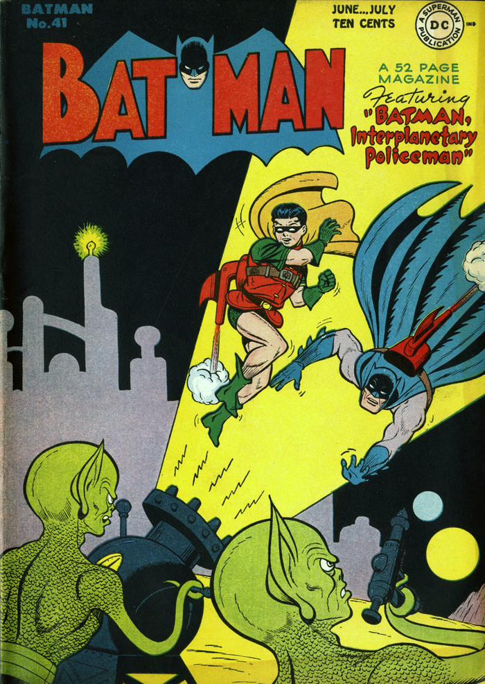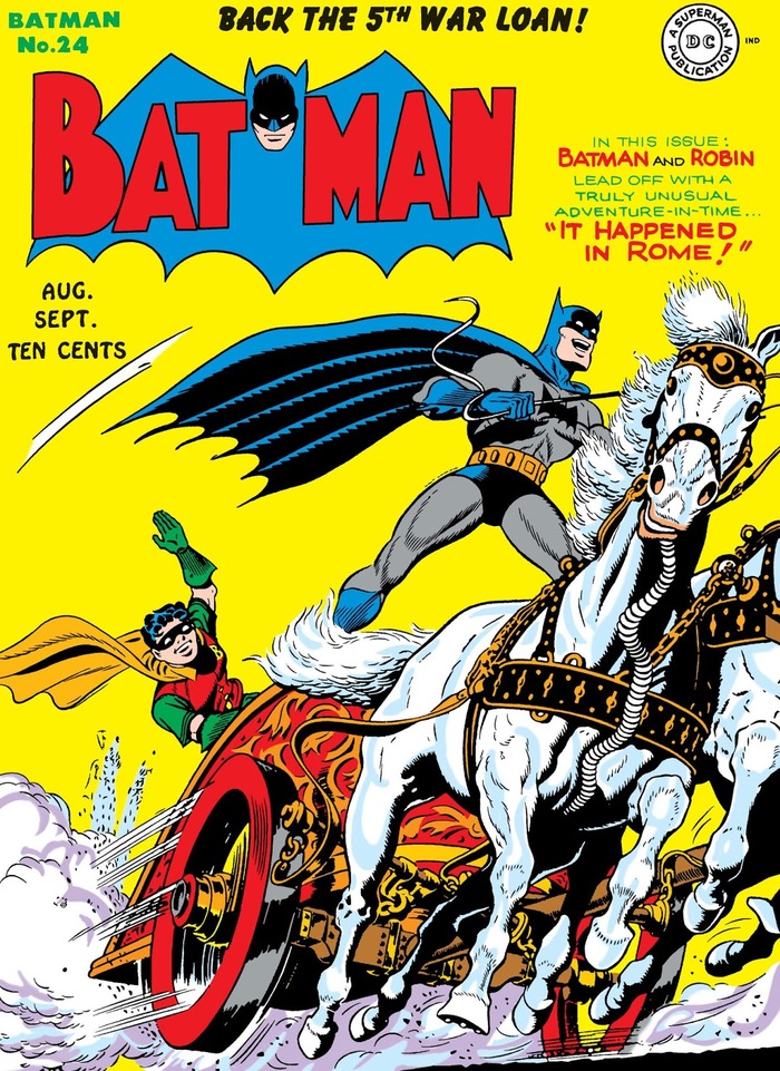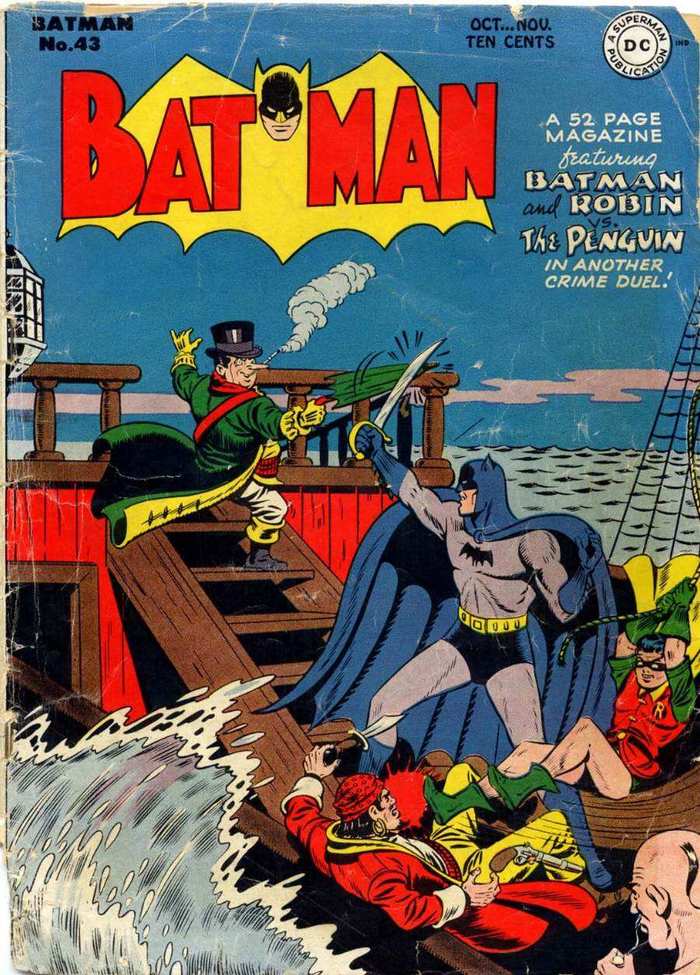 Это сейчас Бэтмэн только всяким «суперам» зубы пересчитывает, а вот в 1940-е комиксы про Бэтмэна выходили настолько обильно, что на каждый выпуск «суперов» не напастись было. Вот, Batman #4 начинается со столкновения с Джокером, которому хватило стратегического гения прикинуться клоуном в цирке. Зрители полюбовались, как Бэтмэн бросается циркачами, ура. А уже ко второй истории идеи для номера кончились, поэтому врагами Бэтмэна выступили пираты во главе с новым Чёрной Бородой. Нет, без всяких путешествий во времени, просто пираты в доках Готэма, йохохо и бутылка рому, листаем дальше. Робину очень пригодились данные Брюсом Уэйном уроки фехтования. Потому что с пиратами нужно сражаться их же оружием. Вот. А ещё в двух историях Бэтмэн сражается сначала с рэкетирами, затем с мошенниками. Никаких чудес, сплошной экшен. Разве что в последней истории Брюсу Уэйну пришлось замаскироваться под футболиста и сделать карьеру тому, под кого замаскировался. Но это не мошенничество, а дружеская помощь, не путайте.