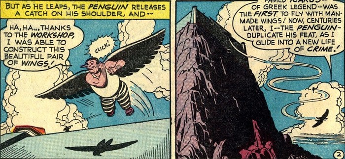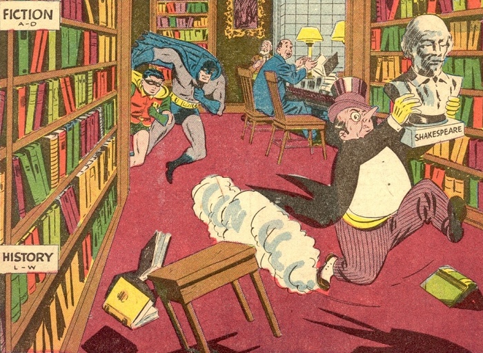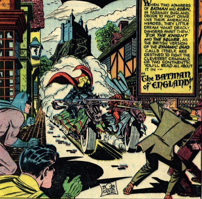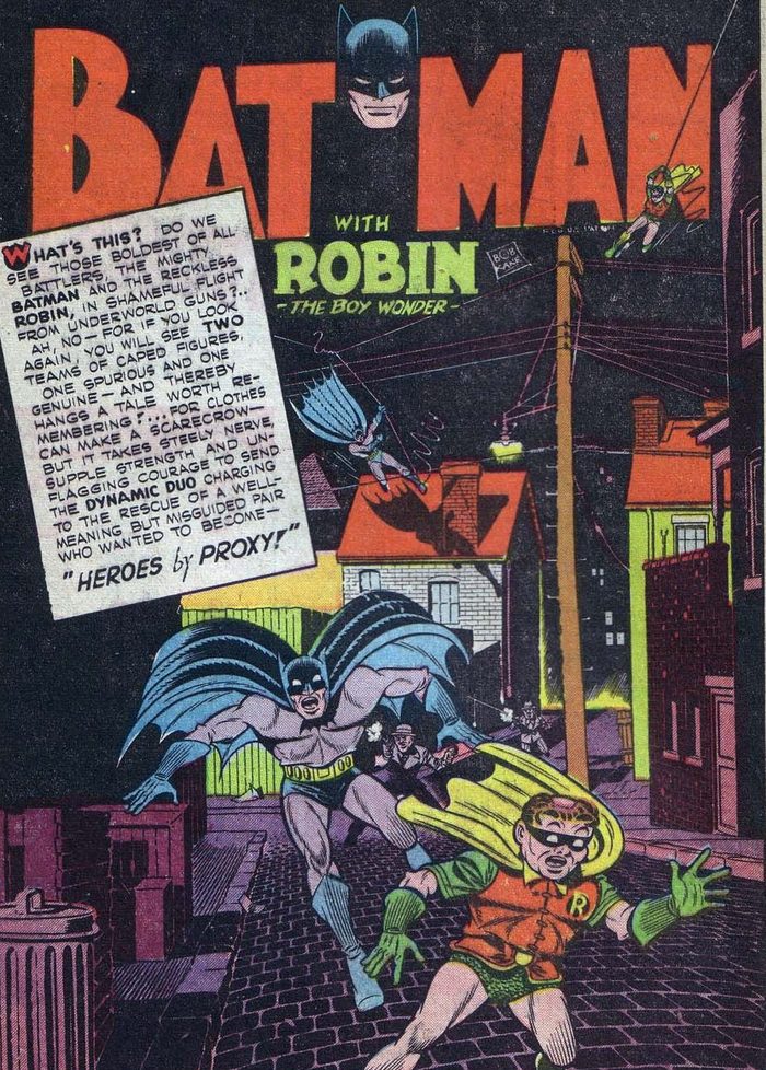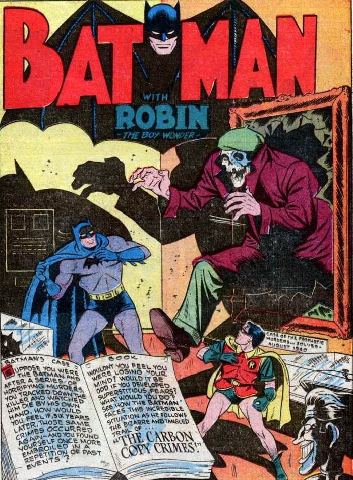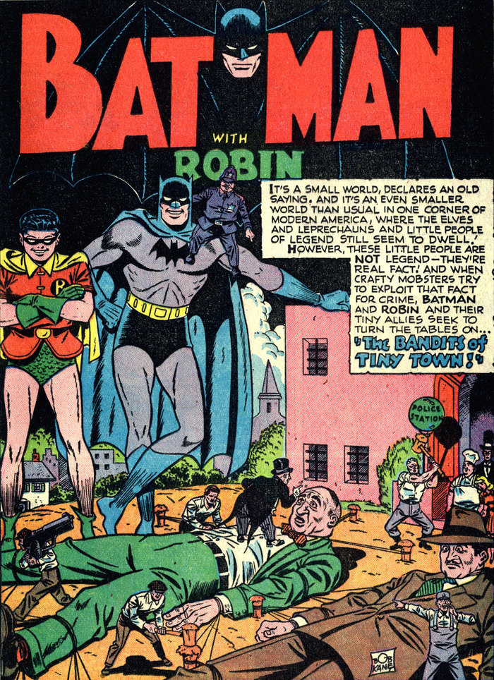 При прошлом появлении Джокер якобы погиб – его сбросили в пропасть. Но вот, в Batman #5 за март 1941 г., он возвращается – и организовывает банду. И-и-и вполне ожидаемо получает по голове снова опять, только на сей раз Робин сбрасывает Джокера с маяка, и теперь-то уж Клоун-Принц преступного мира точно-точно погиб. Охотно верится. Но чем можно заняться помимо Джокера? Например, наукой. Во второй истории Бэтмэн сталкивается с учёным, способным телепортировать кого угодно в мир любой книги. На беду, дочь учёного случайно телепортировалась в мир сборника сказок, и Бэтмэну с Робином нужно вызволить её из этой ужасной книги. А значит – сразиться с ведьмами, драконами, великанами и прочей сказочной живностью. А после этого в третьей и четвёртой истории можно вновь приняться за обычную гопоту. Правда, в третьей истории эта самая обычная гопота чуть не убила Робина – но до «Смерти в Семье» ещё много-много лет. А четвёртая история носит поучительный характер – опять-таки, борьба с распространением тяги к преступлениям среди молодёжи.