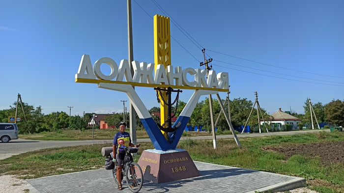 С погодой сегодня повезло. Ветра практически нет, солнце жарит, но не сжигает, держит себя в рамках 30 градусов. Бодро прокатываем сорок пять километров до станицы Должанской, где запланирован осмотр косы, которая является границей Таганрогского залива и Азовского моря.