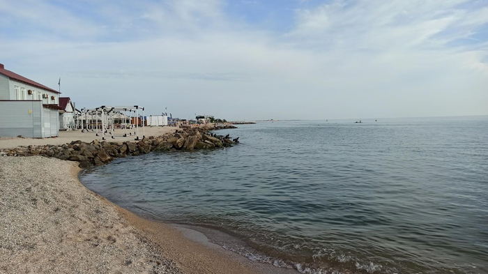 Камышеватская пока осталась обычной станицей. В отличие от Должанской, здесь не курорт. Коса поменьше, нет застройки и толп народа. Море, пляж и дорога вдоль берега, а судя по её накатанности в пик сезона и при хорошей купальной погоде, народу тут тоже бывает немало. При этом берег можно назвать чистым, стоят мусорные контейнеры и, судя по всему, даже регулярно вывозятся.