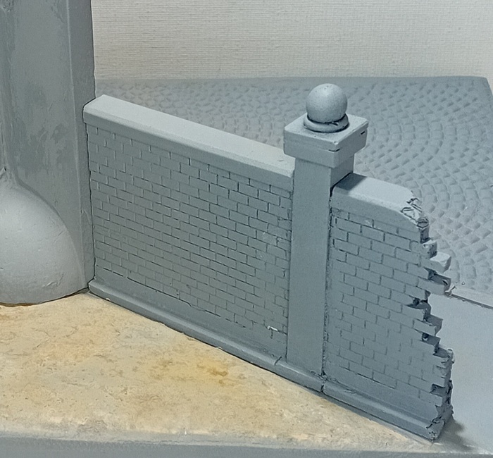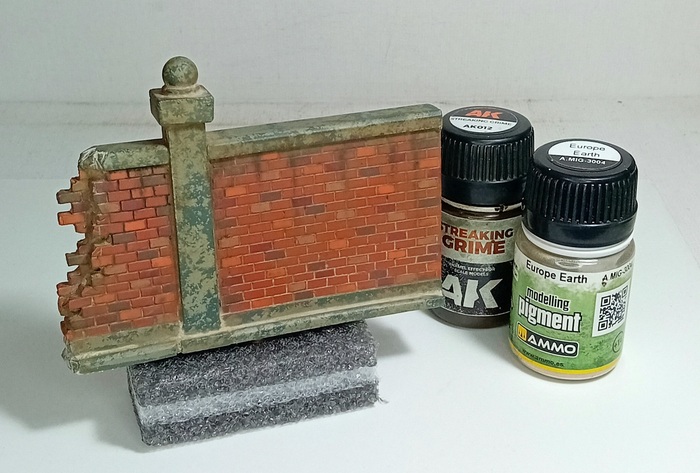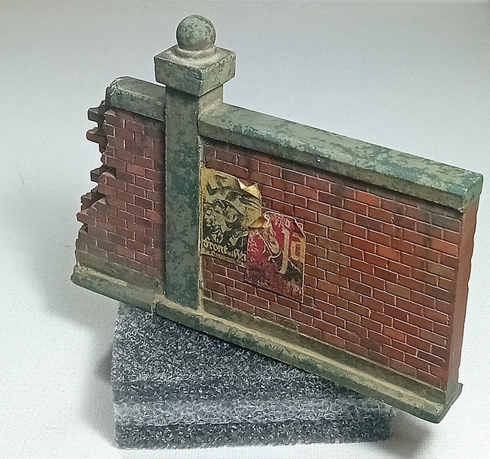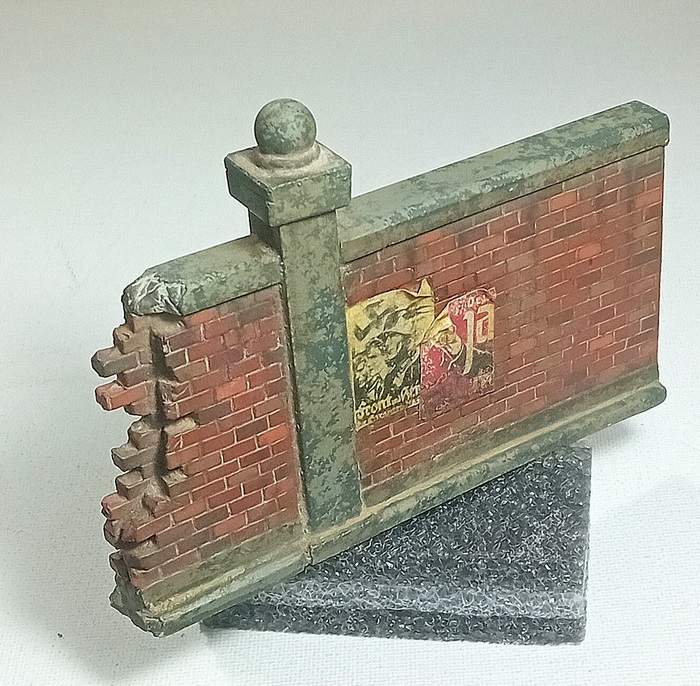 Привет всем коллегам и любителям стендового моделизма! Накопилось немного контента и я продолжаю знакомить Вас с постройкой моей новой диорамы на тему Второй Мировой. В этой части я расскажу о важном элементе диорамы - кирпичном заборе. Изначально я приобрёл набор из пластифицированного гипса от фирмы Artbaza. Он включал в себя два пролёта стен (одна целая и одна разрушенная) и 4 столба. В работу я взял 1 столб и 2 стены.