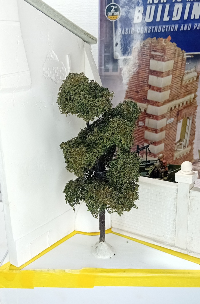Дерево изготовил сам по аналогии с дубом из прошлого проекта, но на этот раз сделал его менее размашистым и более похожим на реальные деревья. Это тот случай, когда больший объем практики переходит в заметное улучшение результата.