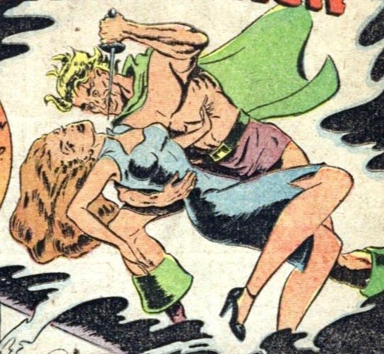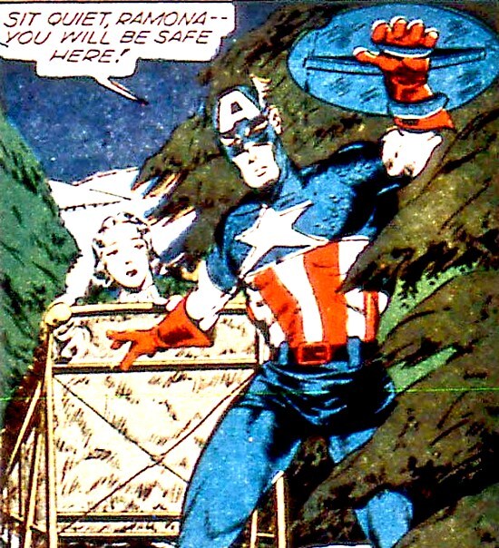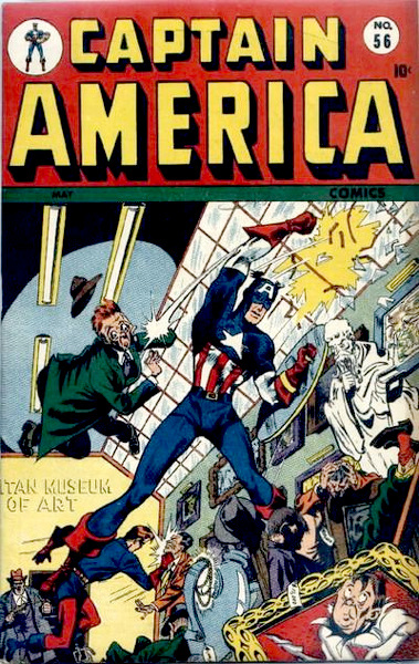 Продолжаем? Продолжаем, и переходим к комиксу Captain America Comics #56. Неизвестные злоумышленники похищают гуманитарную помощь, предназначенную для побитой войной Европы! Поскольку произошло это в Алжире, по просьбе американского правительства звёздно-полосатые герои отправляются туда. После долгого и путаного расследования в духе «никому нельзя верить» выясняется, что злоумышленники – американские гангстеры. Попутно в Капитана Америку влюбляется местная девушка, но Кэп не может с ней остаться. Бакки и рад, видел он эту девушку без вуали. Добрая и милая, но точно не красавица.