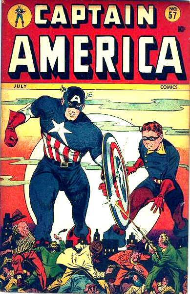 Комикс Captain America Comics #57 за июль 1946 года отличается непривычной обложкой – в кои-то веки Капитан Америка и Бакки не метушатся среди толпы злодеев в стиле "Найди Уолли", а занимают большую часть обложки! Капитан Америка и Бакки расследуют странную череду преступлений. Преступления якобы совершает знаменитый эстрадный певец, но у него каждый раз есть алиби – преступления совершаются в то время, когда певец выступает. Личный врач певца уверен, что его песни просто очаровывают публику, что та везде видит лицо исполнителя...но что-то тут не так. Кэп раскрывает, что личный врач певца – талантливый пластический хирург, и он сделал одному бандиту лицо певца. И врача, и ложного певца Кэп и Бакки сдают полиции. Во второй истории Человек-Факел и Торо ловят банду шантажистов, но там ничего интересного. Разве что девушка, выставлявшая себя жертвой, внезапно оказывается предводительницей этой самой банды, да и ещё шантажисты запугивают директора местной гостиницы, создавая видимость полтергейста.