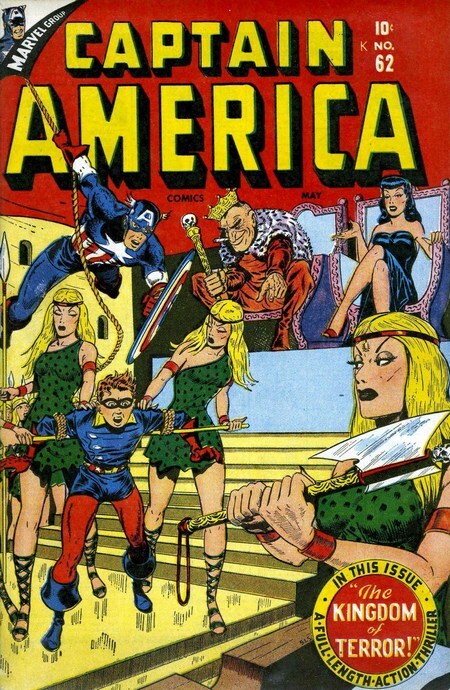 А далее в программе комикс Captain America Comics #62 и история “Королевство ужаса”. Помогая Бетси Росс с написанием статейки, Капитан Америка и Бакки выходят на Клуб Преступности – организацию, предоставляющую укрытие всевозможным злодеям, а также подпольное казино. Главой Клуба оказывается женщина и Джеффри Мейсу как-то неловко бить даму – но вот Бетси таких неловкостей не испытывает, прописывает преступнице по лицу и сдаёт её властям. Злодеем второй истории, под названием “Пляска смерти”, становится Синьор Загана – пока его красавица-дочка танцует, сам Загана обворовывает зрителей, а некоторых и убивает, если сильно возмущаются. Вопреки традиции, дочурка не стонет под гнётом тирана-отца, а активно ему помогает, но соучастницей не считается. Загане удаётся похитить Кэпа и Бакки и использовать их в качестве мишеней для метания кинжалов, но звёздно-полосатые герои высвобождаются и устраивают ему взбучку.