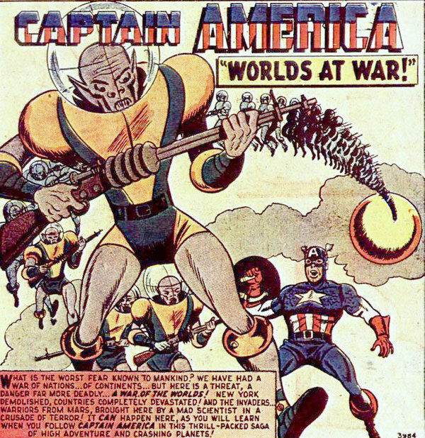 С истории «Тоннель Ужаса» начинается комикс Captain America Comics #15. В Нью-Йорке представитель пятой колонны, Фриц Кроун, приказывает своим прихвостням сеять панику, чтобы заставить американцев эвакуировать Манхеттен и подорвать боевой дух. Капитан Америка начинает это дело расследовать – но его похищают бойцы в силовой броне, и затаскивают в потайную пыточную камеру под землёй. Спасать Кэпа отправляются Бакки и Бетси Росс, а Кроун в это время планирует пустить по реке мины, которые подорвут американские корабли, и закидать людей гранатами с крыши небоскрёба. Впрочем, Бакки освобождает Кэпа и тот отправляется в погоню за злодеем, в процессе которой Кроун «случайно» падает с большой высоты насмерть. Вторая история поинтереснее – в городе Готэм (никакого отношения к Дисишному...во всяком случае, упоминаний о Бэтмэне в комиксе нет, и да, в прошлой подборке хотя бы намёк на Бэтмэна был, и Готэм тоже фигурировал) объявляются трёхметровые марсиане! Многие воспринимают это как прикол, но марсиане убивают людей! Целые семьи!