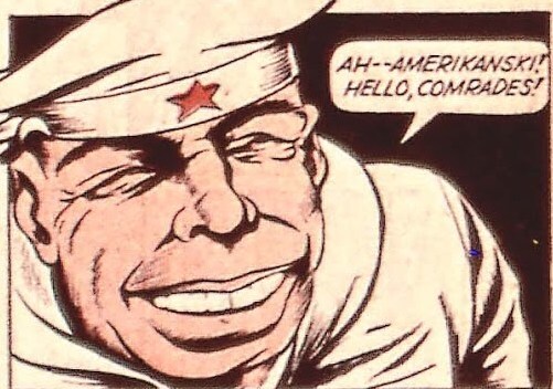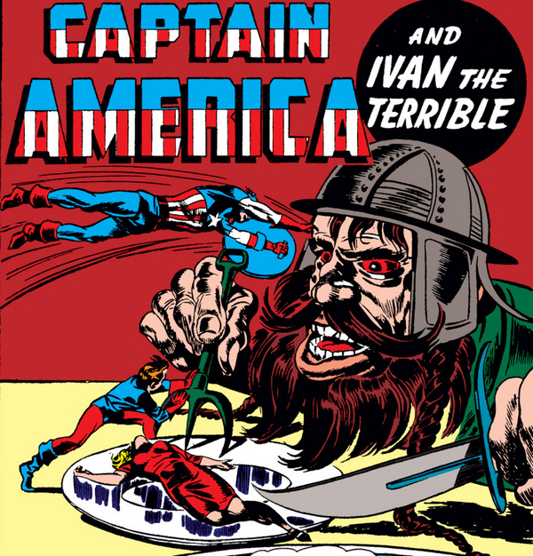 Ну и отлично, перейдём-ка к комиксу Captain America Comics #4 за июнь 1941 года. В первой истории Капитан Америка и Бакки Барнс противостоят Нечистому Легиону – группе бомжей, заклеймённых свастиками и шпионящих в пользу нацистов (а ещё они просят милостыню, а «заработанное» отдают в фонд на нужды нацистов). Бакки в этой истории попался, к нему чуть не прижали раскалённую свастику, но Кэп вовремя его спас. Вторая история позанятнее – это сон Бакки. И снится ему не рокот космодрома, а холодная Сибирь, которой правит добрая и справедливая царевна Бетси Росс. Но Сибирь намерен завоевать злой и страшный Иван Грозный! Как хорошо, что рядом совершенно случайно оказывается Капитан Америка, он избивает Ивана, как отбивную и отнимает у него престол в пользу Бетси и её отца. И все довольны. Чо там дальше было, неизвестно – Стив разбудил Бакки, пока у того эротические фантазии не попёрли. В третьей истории Капитан Америка ловит фальшивомонетчиков, а на рядового Роджерса продолжает истерить сержант Даффи за то, что Стив постоянно убегает в самоволки (чтобы побыть Капитаном Америкой) и время от времени острит вышестоящему начальству.