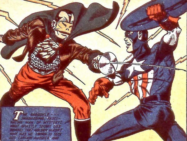 Всё зло Азии растеклось по обложке комикса Captain America Comics #35, тем не менее, первая история в комиксе с Азией не связана. Внимание фокусируется на Джордже Тарраге, человеке-загадке, эксцентричном европейском аристократе, который постоянно носит маску, чтобы не смущать народ своим изуродованным лицом. Тарраг проникается идеями нацизма и решает прислуживать нацистам, как Горгулья! С этой целью он пытается похитить военные планы, которые были отданы на хранение дочери генерала, Анне Хатчинс, но Капитану Америке удаётся и девушку спасти, и Горгулью остановить. Злодей (которого пару раз без маски за гориллу приняли) обещает отомстить...но это пустое обещание, ведь в комиксах он больше не появлялся. Персонаж по прозвищу «Горгулья» ещё появлялся, как враг Халка, но это уже совсем другой персонаж. В истории «Тайна ужасного отшельника» Человек-Факел и Торо сражаются с нацистами, которым помогает местный бородатый отшельник...правда, этим отшельником оказывается замаскированный нацист, а настоящий отшельник тухнет в плену, помогает пламенным героям спастись из вакуумной ловушки, и те раскидывают нацистов, устроив им прожарку.