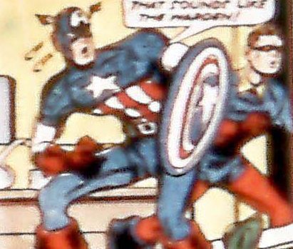 В истории под названием «Тень Чудовища» от Капитана Америки хочет избавиться преступный авторитет Бутч Кэнтуэлл. Для этого он сооружает пуленепробиваемую копию костюма Кэпа (а почему бы самому Кэпу не выдать пуленепробиваемый костюм? Ну это уже читерство) и начинает грабить корованы и могозины, и конечно же, полиция обвиняет в этом настоящего Капитана Америку. Впрочем, полицейских не разбил склероз, они помнят все заслуги Кэпа, так что после разговора с главой полиции настоящему Кэпу удаётся заготовить для самозванца ловушку. Дождавшись прибытия Кэнтуэлла, Капитан Америка нокаутирует его с одного удара. В последней истории звёздно-полосатые герои противостоят злым индусам, банде Змеиных Черепов. Индусы убивают американских миллионеров и присваивают их деньги! И что самое странное, попав в логово Змеиных Черепов, Капитан Америка начинает слабеть – оказывается, в воздухе распылён мелкодисперсный змеиный яд. На Бакки яд не действует – в одной из предыдущих стычек враг сильно двинул Бакки по лицу, и ему пришлось в нос ватные тампоны вставить. Воспользовавшись этим, Бакки выбивает окно, яд выветривается, Кэпу становится лучше, он набрасывает индусам зипдюлей и сдаёт их властям. Даже странно, что никто не упал в яму со змеями или цистерну с ядом.