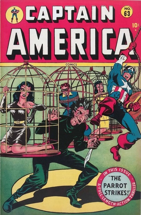 Клювастый злодей грозит читателям с обложки комикса Captain America Comics #63, но история начинается не с него, а с “Кеглей ужаса”. В городе объявляется банда карликов, которой командует некий Рип ван Винкль – самопровозглашённый ходячий анахронизм, человек из прошлого (много лет спустя самого Кэпа будут сравнивать с ван Винклем, но не этим). Ему даже удаётся застать звёздно-полосатых героев врасплох и захватить, но они вырываются из ловушки (сети не особо дружат с битым стеклом) и набрасывают и Рипу, и карликам. Оказывается, Рипом прикидывался родственник богатой девушки, положивший глаз на её драгоценности, которые та захотела отдать друзьям просто так. А вот во второй истории уже появляется красавец с обложки. Жил да был человек с выдающимся носом, мистер Полли, и он совершенно не терпел, когда над его носямбой смеялись, так что взял и подался в преступность. Но каким бы ни был крутым его клюв, стальной щит им не проткнуть. Подправив злодею профиль хуком справа, Кэп сдаёт его в полицию.