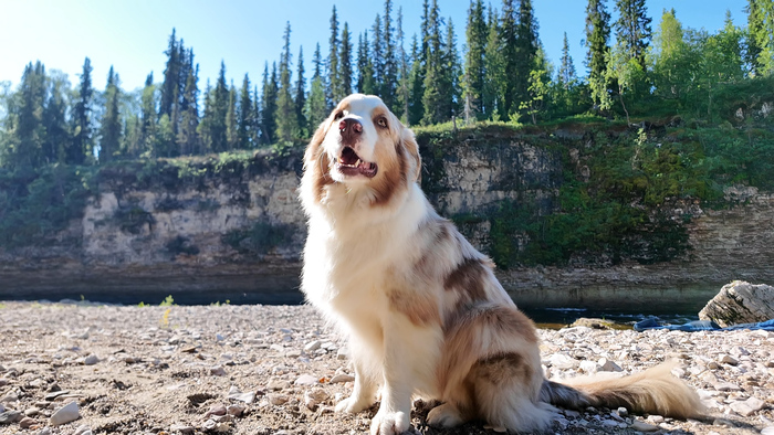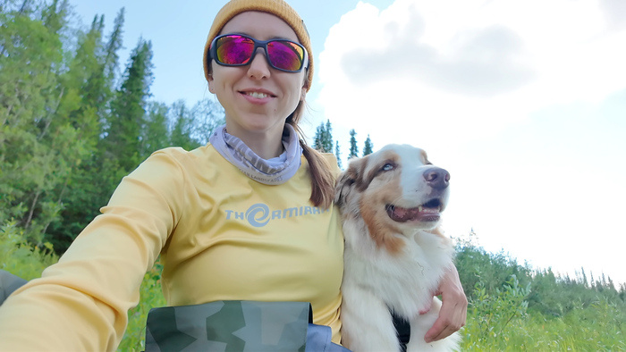 Марс щуку оценил больше, чем хариуса, поэтому у него появилось прозвище Большой Рыбовски. Пока я перерабатывала щуку дождь закончился, появились просветы.